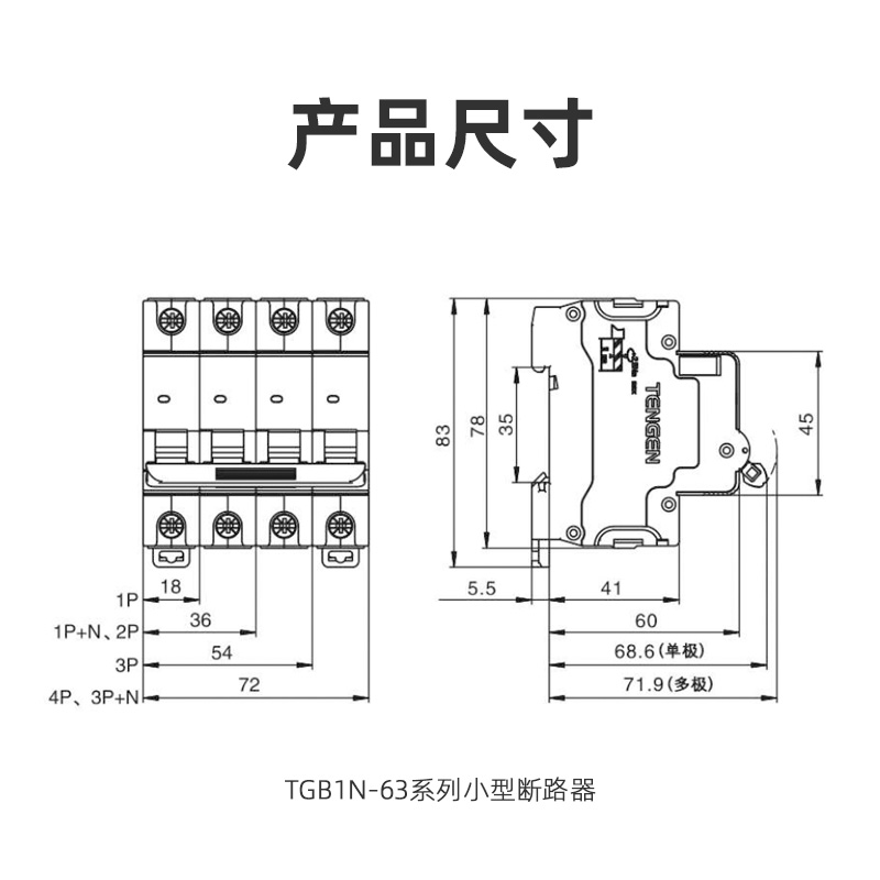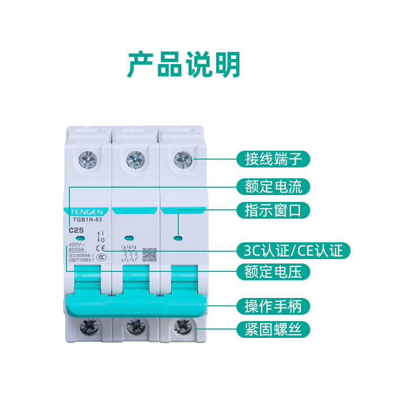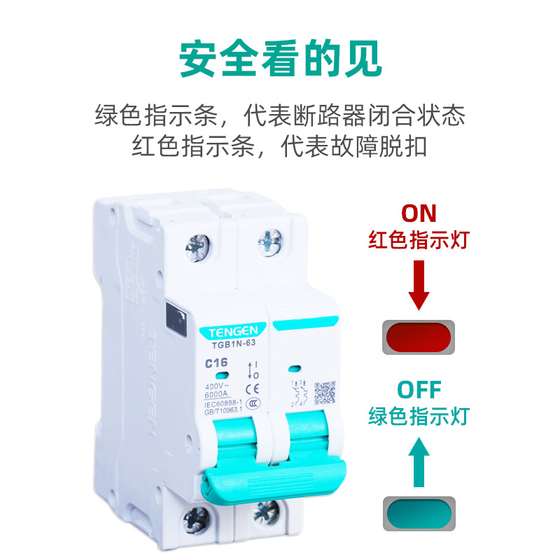Tengen day positive TGB1N-63 air switch DZ47 small breaker 1P2P3P32A electric brake 63A home