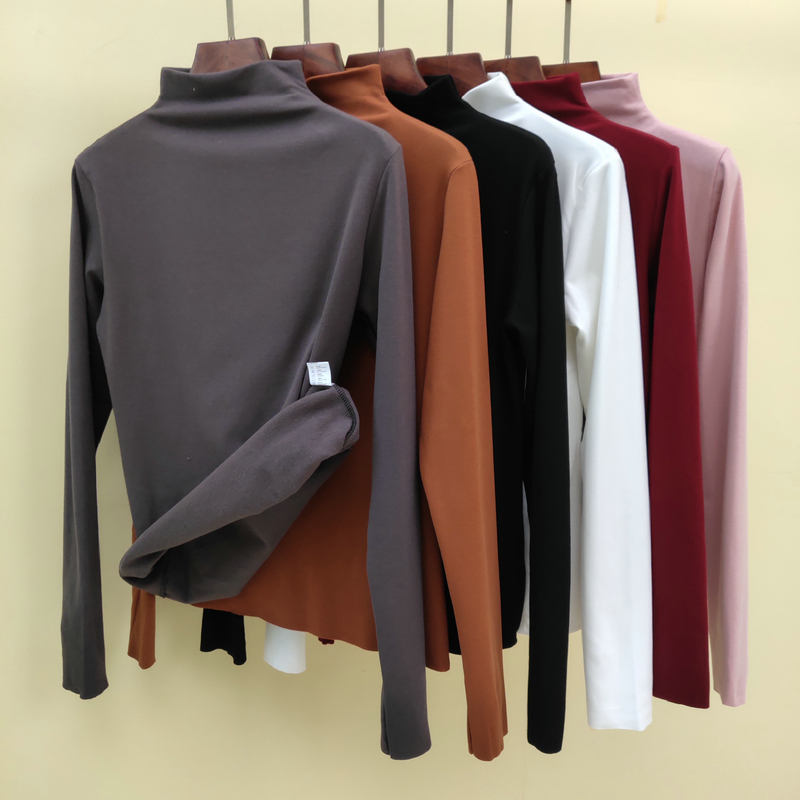 2022 Spring and autumn new grinding and semi-high neckline thickened undershirt woman long sleeve uplift with velvety pure cotton blouse