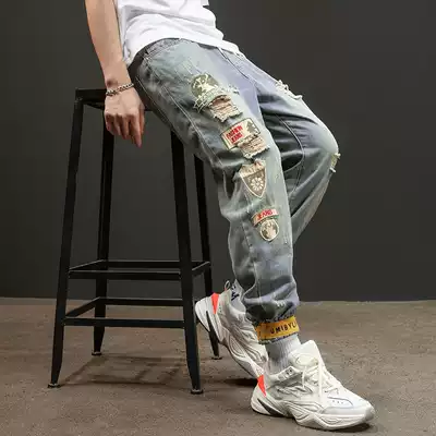 2021 new autumn hole tooling jeans men's Tide brand loose ties hip hop trend Joker long pants