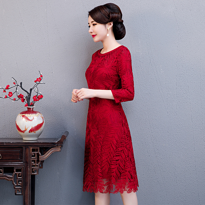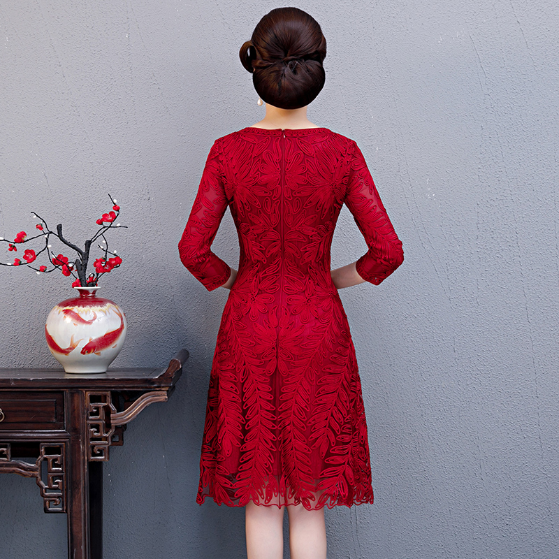 Heavy embroidery Fat mother-in-law improved Cheongsam dress Noble wedding little man happy mother wedding dress