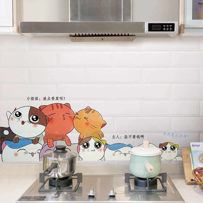 Kitchen Wallpaper Anti-Oil Waterproof Tile Stickers Cartoon Creative Personality Stickers Self-Adhesive Hearth Decoration Wall Wall Collage