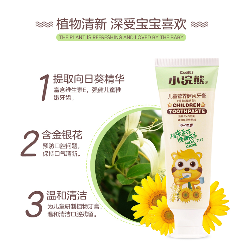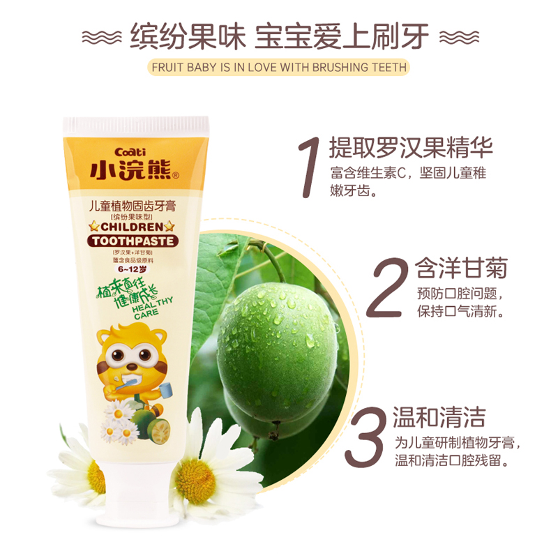 Little Raccoon children's toothpaste 6-12 years old tooth replacement period Baby baby toothpaste Fruit flavor 70g tooth decay prevention solid teeth