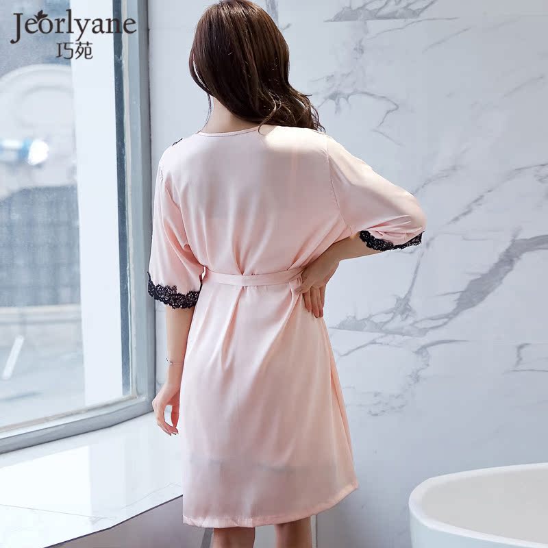 Sling pajamas women summer ice silk thin two-piece sexy nightdress spring and autumn loose lace ladies nightgown suit