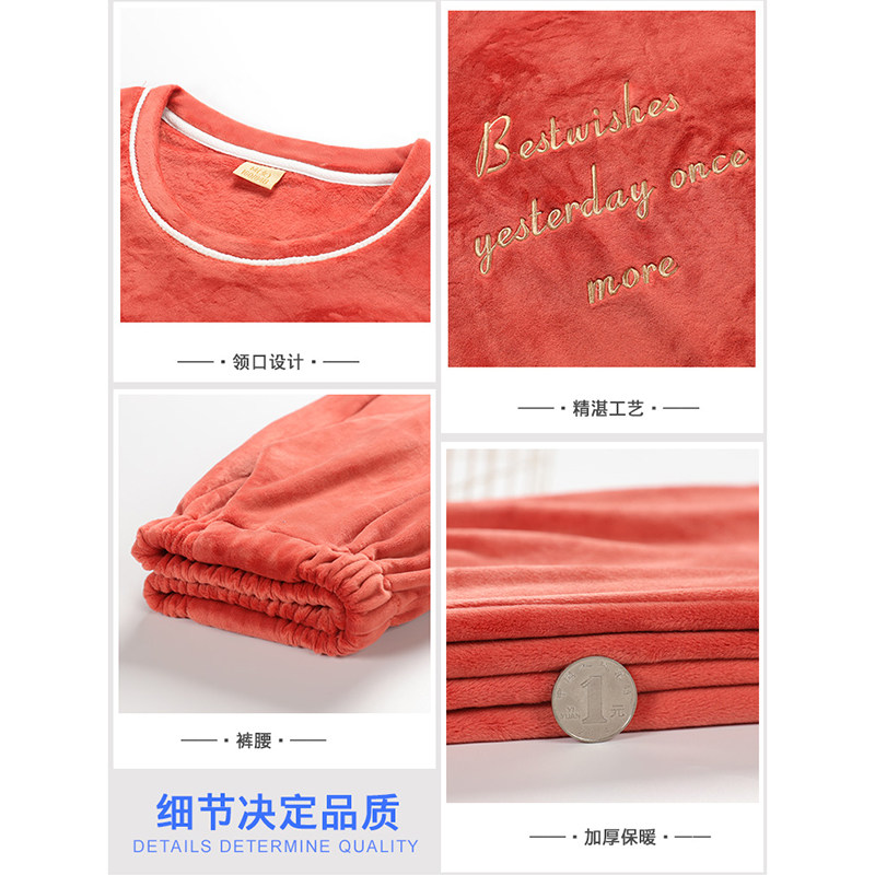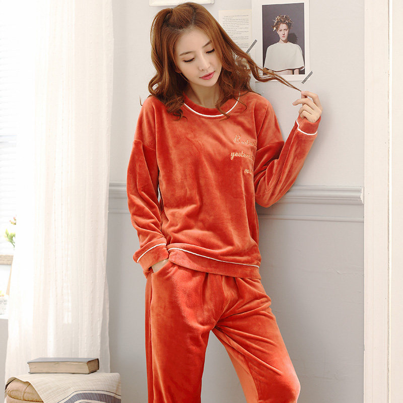 Coral velvet pajamas female spring and autumn long sleeve thickening sleeve fashion and winter island velvet home suit thin