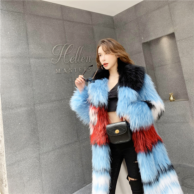 2022 European and American style raccoon fur fox fur woven fur coat women's fur coat suit collar long lapel