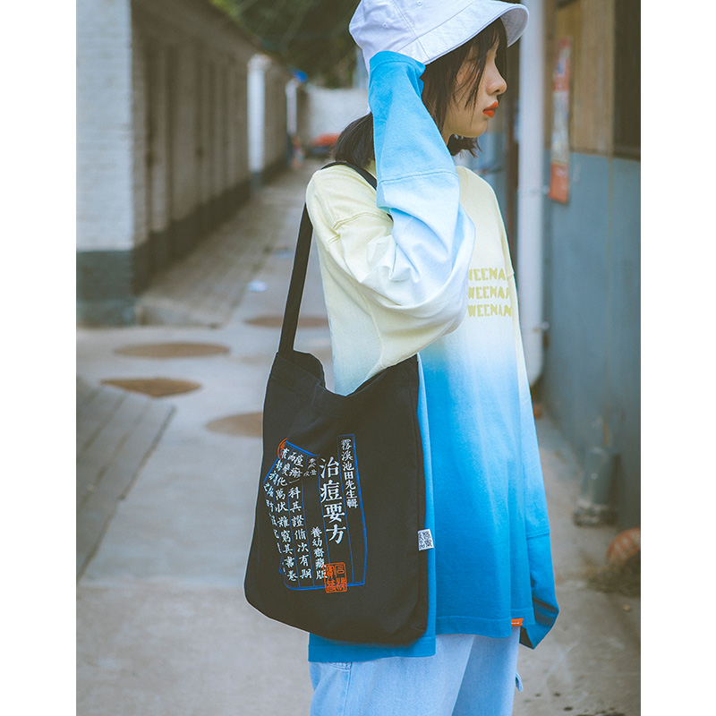 Ruo good product original homemade national tide wind one-shoulder canvas tote bag Japanese literary retro documents female neutral