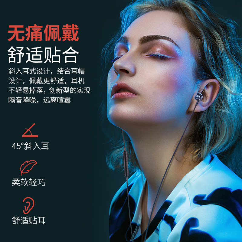 Lanston AM100 Rings Iron Headphones In Ear Style Xiaomi Android Apple mobile phone K Gooaction Iron HiFi High sound quality Men and women General wired Line Control Motion Running noise-reducing ear