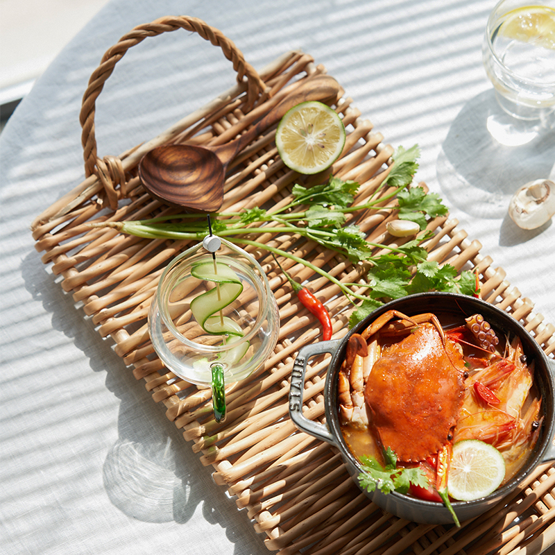 momostalk moins wind original double ear willow rattan chic tray bread food Food Shooting Props