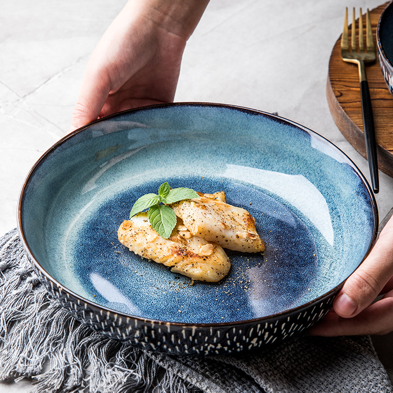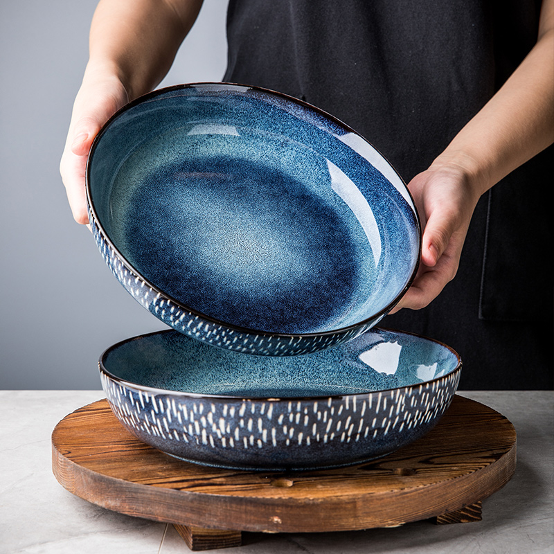 European-style creative tableware household large bowl soup bowl ceramic noodle bowl shallow mouth plate large bowl public vegetable bowl salad bowl plate