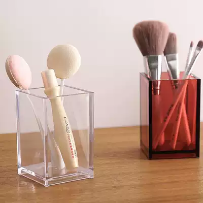 Acrylic makeup brush storage bucket cosmetic table eyebrow brush storage box plastic transparent office desktop Pen Holder