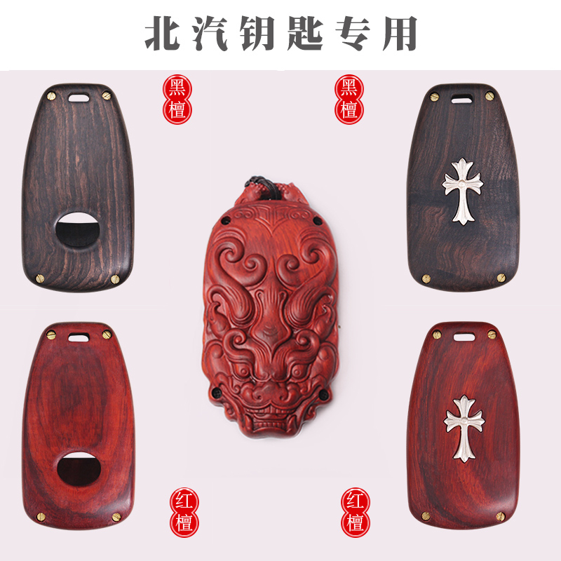 Only suitable for BJ40plusBJ80 original car key (luxury model) red sandalwood key case, free waxing and free key chain (hollow type) ebony key case (fashionable silver label) black