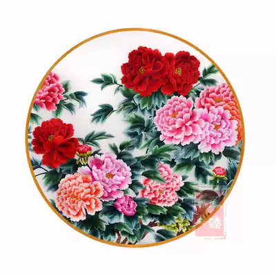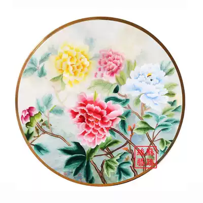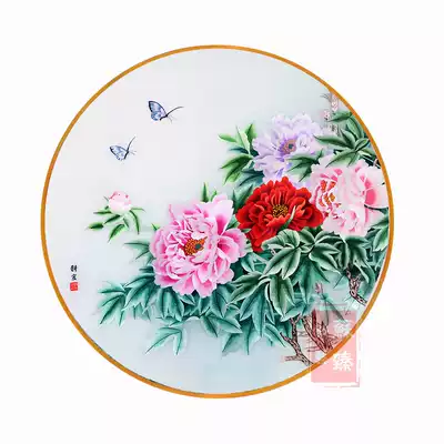 Su embroidery finished hanging painting round peony flower blossom rich silk hand embroidery decorative painting porch new Chinese style living room