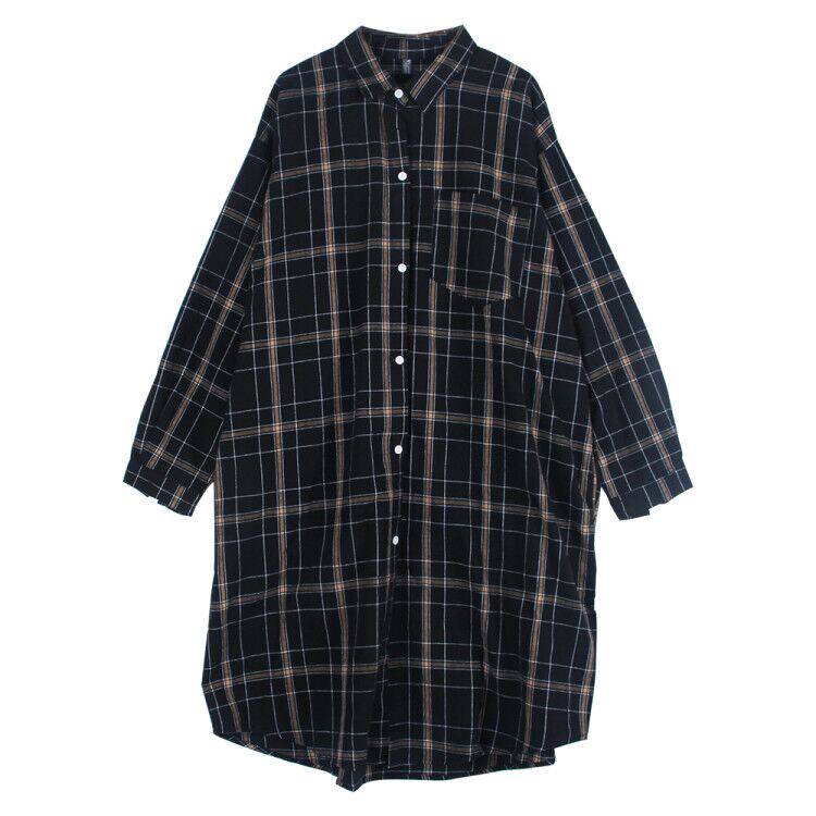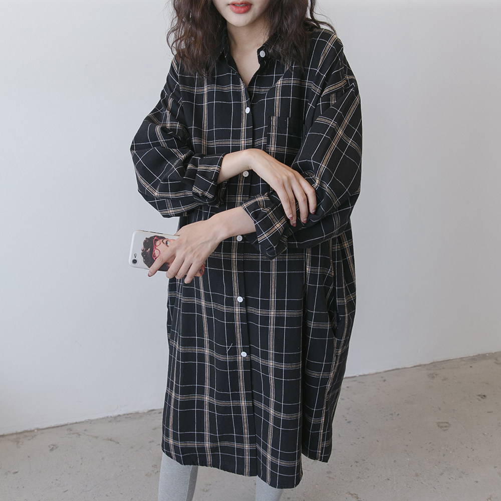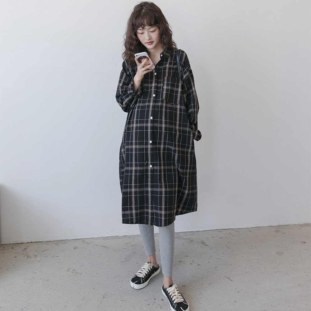 Pregnant women spring dresses Long-sleeved tops Pregnant cotton mid-length casual spring and autumn plaid shirt cardigan jacket