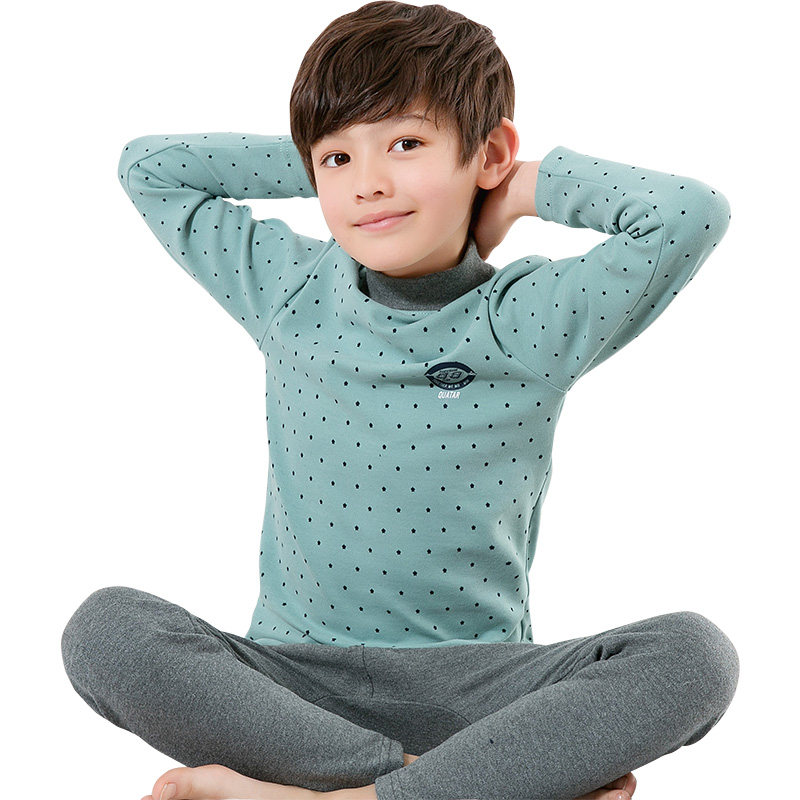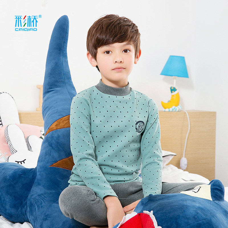 Autumn Winter Children Warm Underwear Suit Boy Suede Cotton Autumn Clothes Sanitary Pants Half High Collar Large Child Thickened Cotton Sweatshirt
