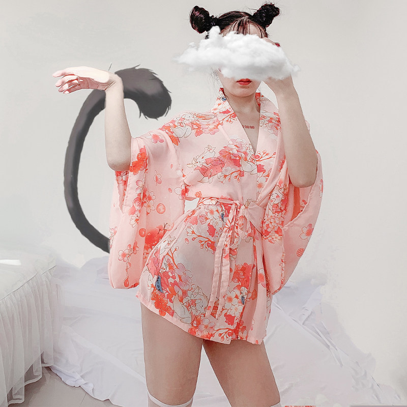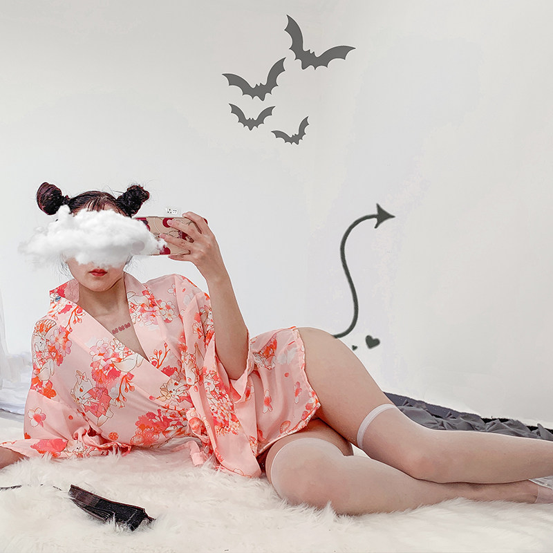 Liao Han products: cute pink fox kimono Japanese role-playing uniform pajamas underwear sexy