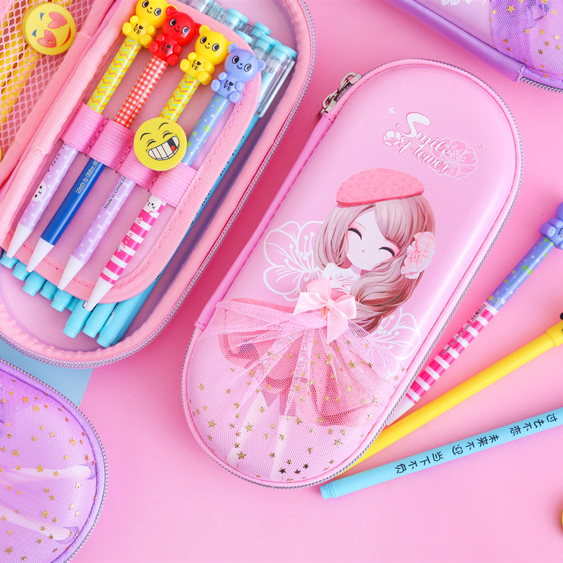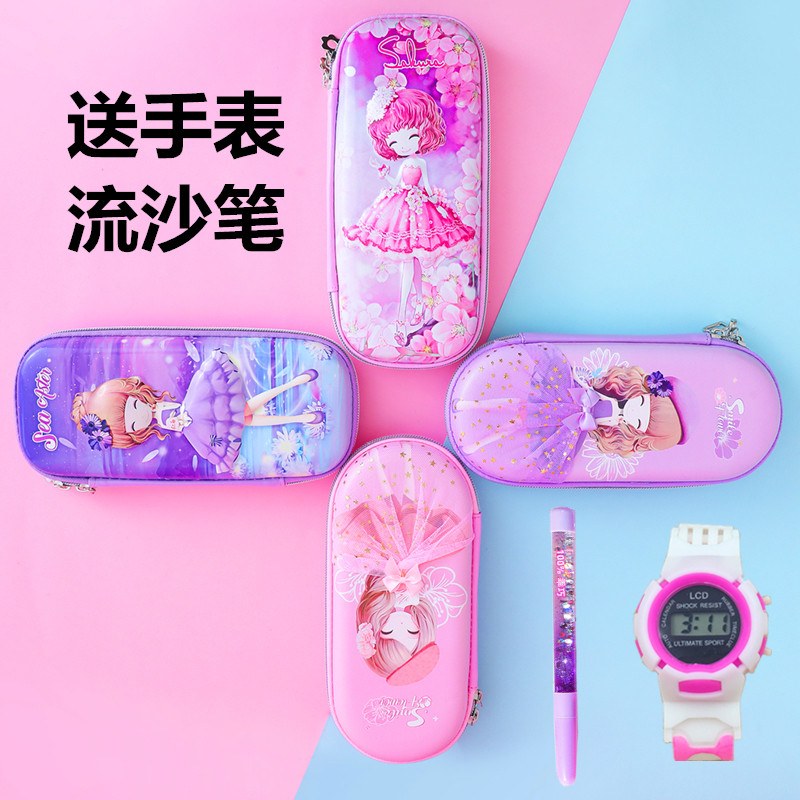 Flower Girl Pen Bag Korea Pencil Case Brief Girls Elementary School Students Fresh And Cute Princess Children Lead Pencil Case Large Capacity Multilayer Stationery Girl's Pen Bag (Send Watches Streaming Sand Pen)