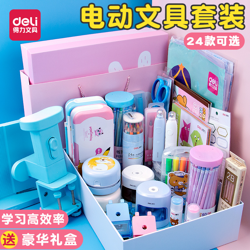 Deli electric stationery set School birthday gift box New Year gift package High-end gift package Children's second and third grade primary school students gift school supplies appliances Boys and girls value-added full set