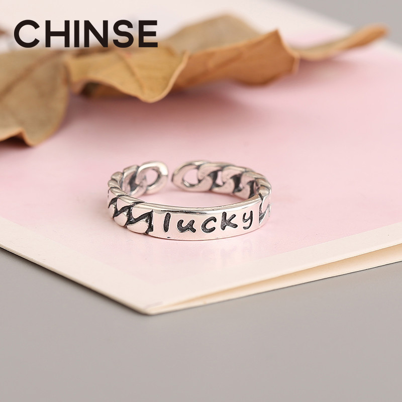 Pour Color S925 Pure Silver Lucky Lucky Ring Women Ins Han Tide Retro Fashion Personality Opening Adjustable Ring