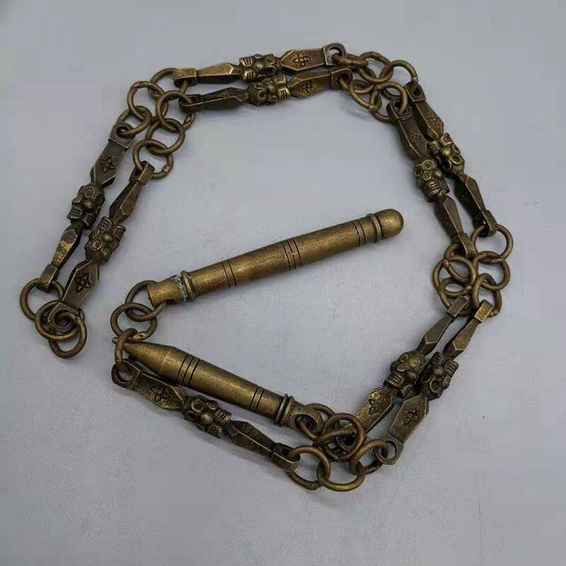 Imitation ancient pure copper Skull skull head Nine strokes Whip Martial Arts Whip Ancient Play Miscellaneous Bronze Ware Collection Craft Gift Hem Decoration Decoration