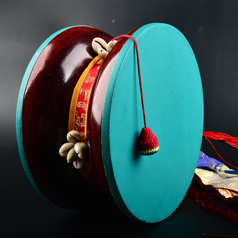 Tibetan Buddhism Tantric dharma mulberry wood Tibetan drum Dharma drum Nepal Mulberry wood sheepskin Copper tambourine set with precious stones Exquisite