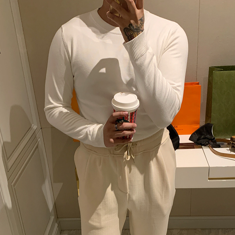 South Korea new autumn and winter men's round neck solid color knitted base Black and White classic pullover warm cotton sweater men