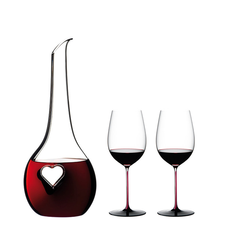 Red collar burgundy Burgundy with cup heart-shaped decanter < Three sets > Red collar junction Bordeaux pair of cup heart-shaped decanter < Three sets >