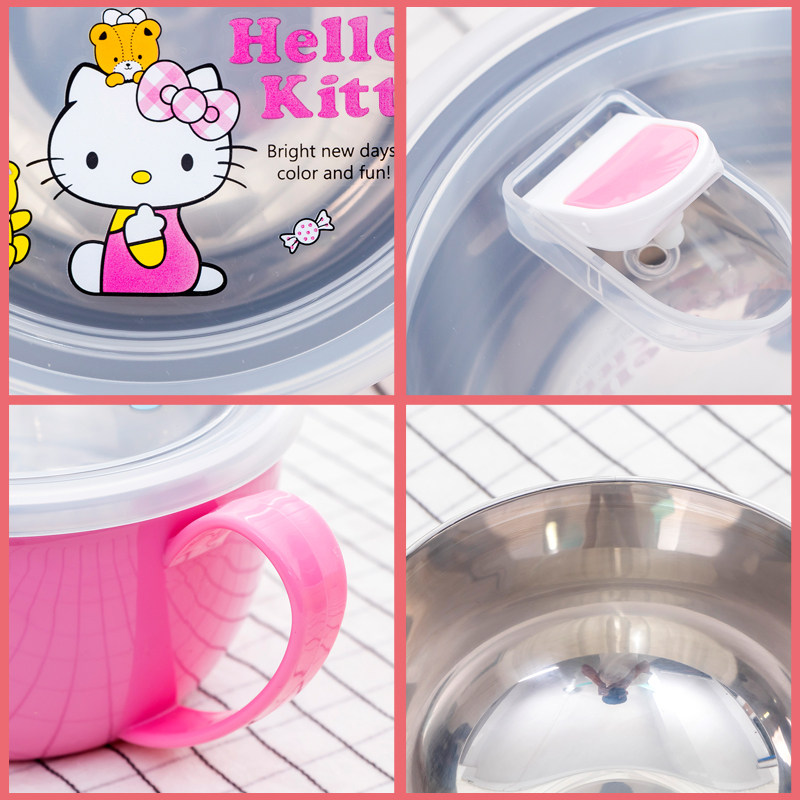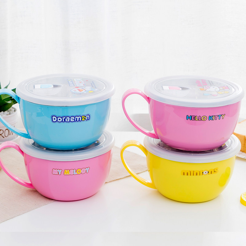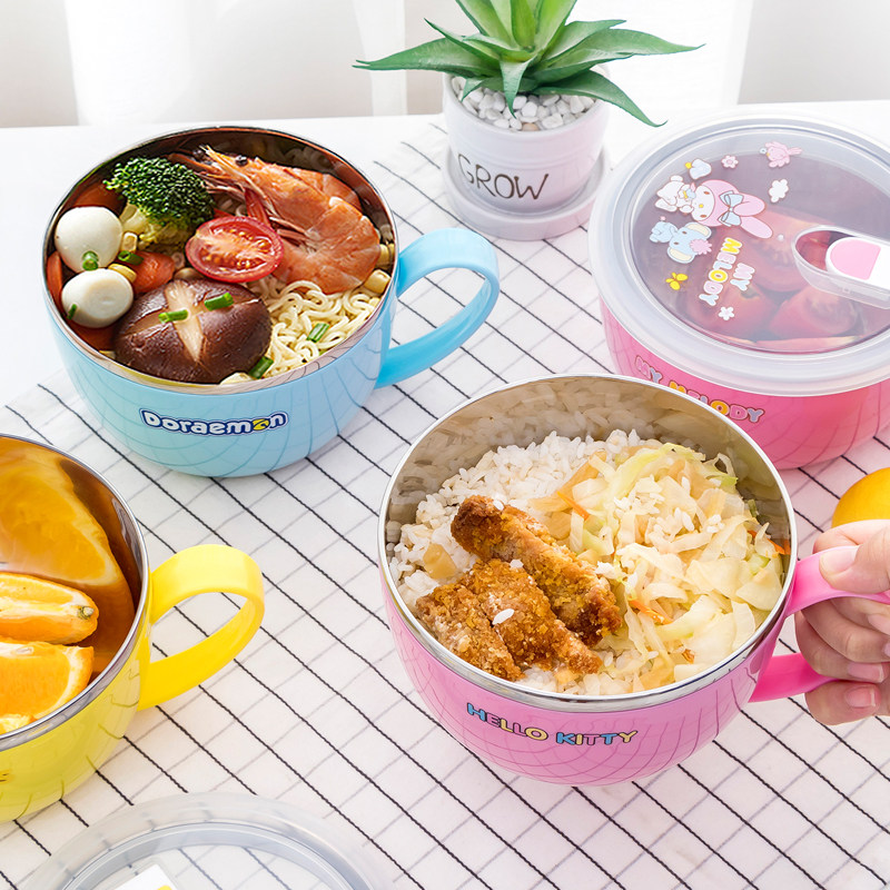 Cute cartoon instant noodle bowl with lid anti-scalding middle children's primary school students stainless steel lunch box sealed leak-proof lunch box