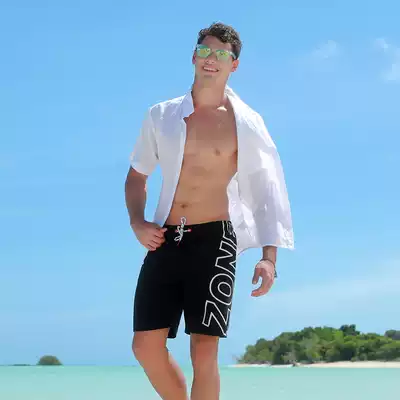 Chic solid color alphabet beach pants men's anti-embarrassment quick-drying loose swimming shorts seaside vacation Thai swimming trunks tide