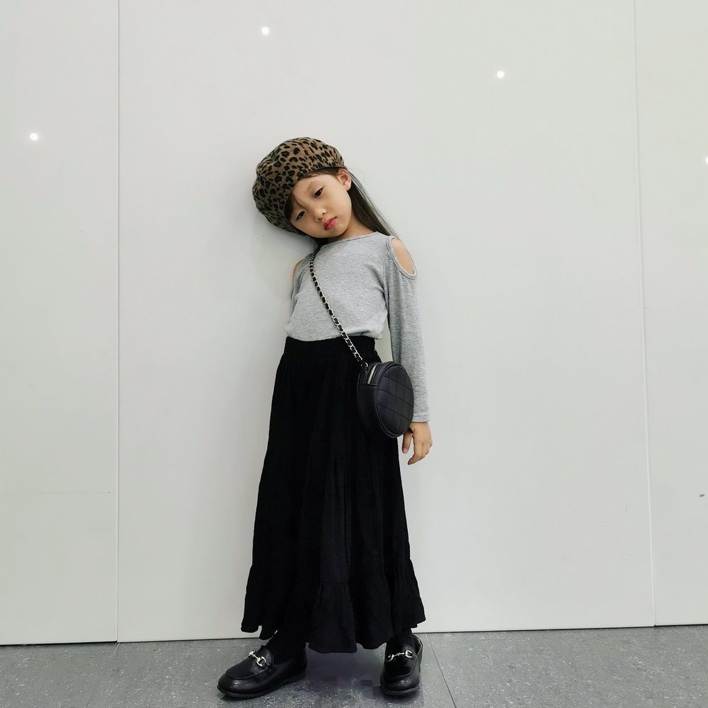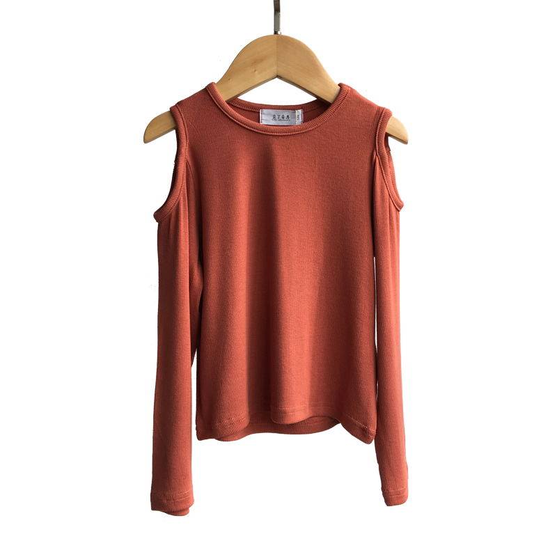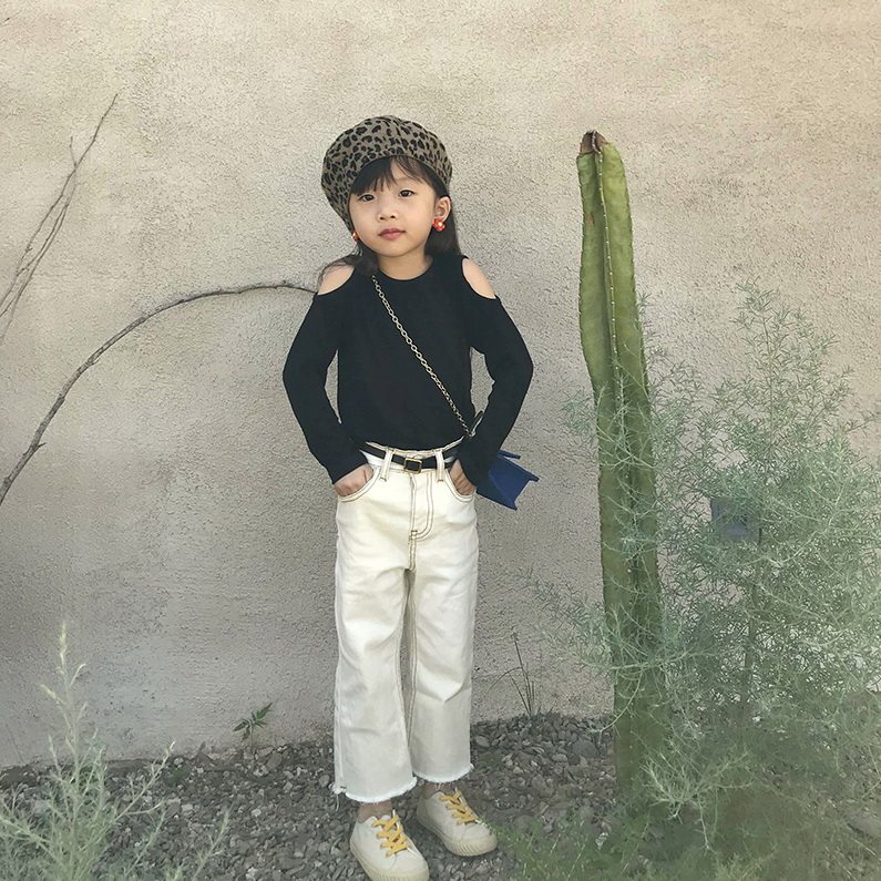 Bean Ding adventure 2020 Children's clothing Girls ' autumn Korean version Japanese cotton long sleeve open shoulder thread base shirt T-shirt Western style