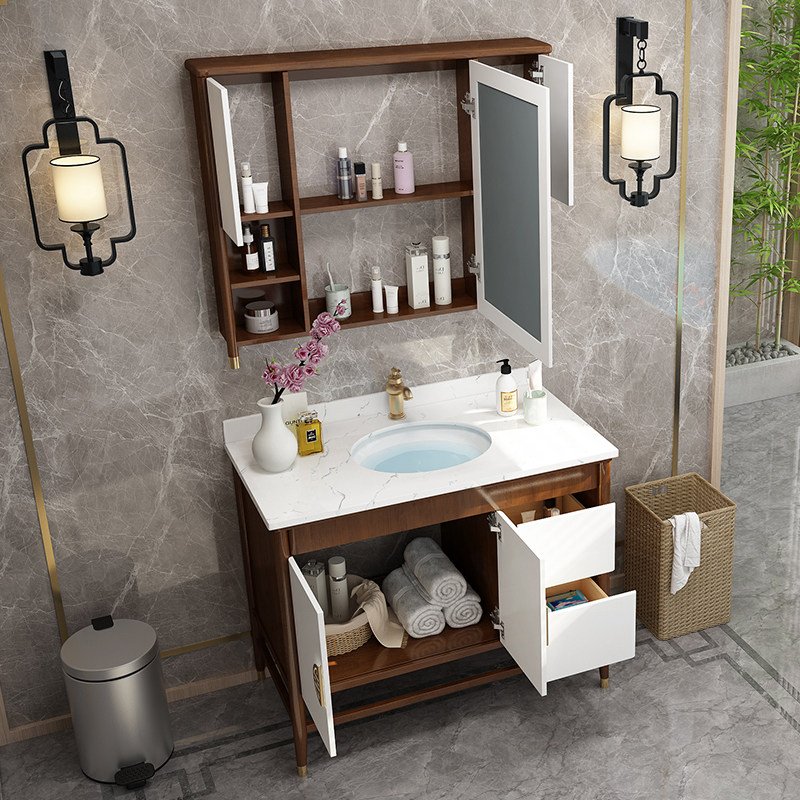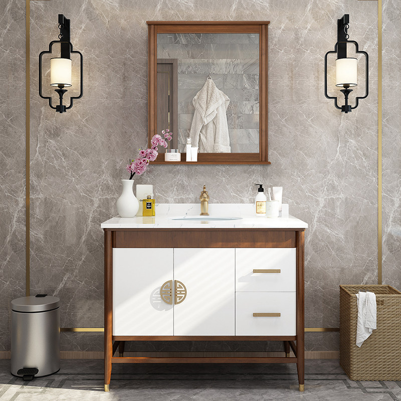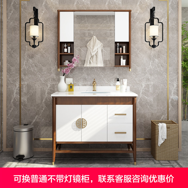 Modern new Chinese bathroom cabinet combination floor-standing solid wood wash basin light luxury dressing room washbasin bathroom