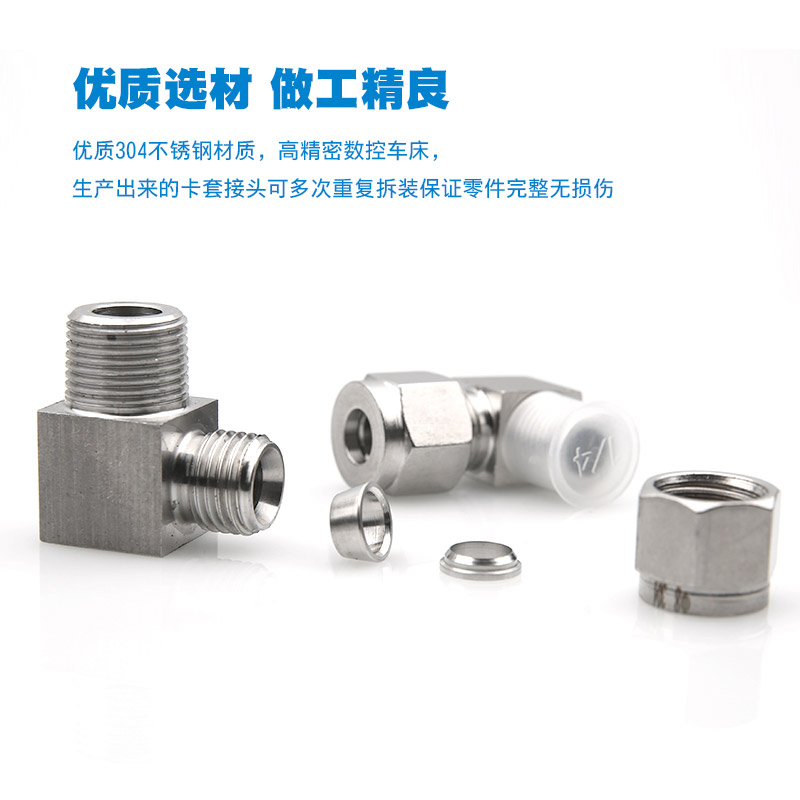 304 stainless steel single double clamping sleeve type right angle terminal joint 90 degrees bend-through elbow gas source angular contact copper tube R ZG