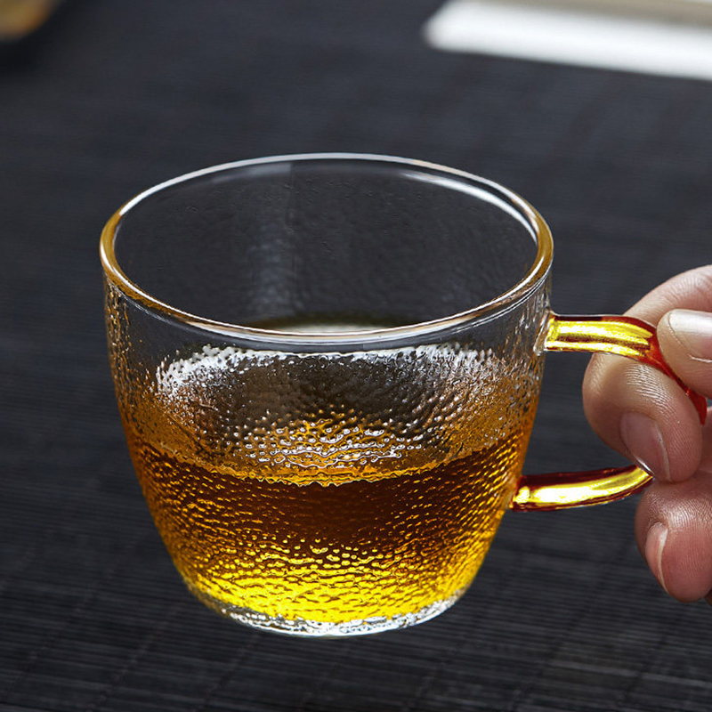Japanese hammered glass Teacup Teacup Handmade Kung Fu small teacup Household tea cup Master cup with handle 6pcs