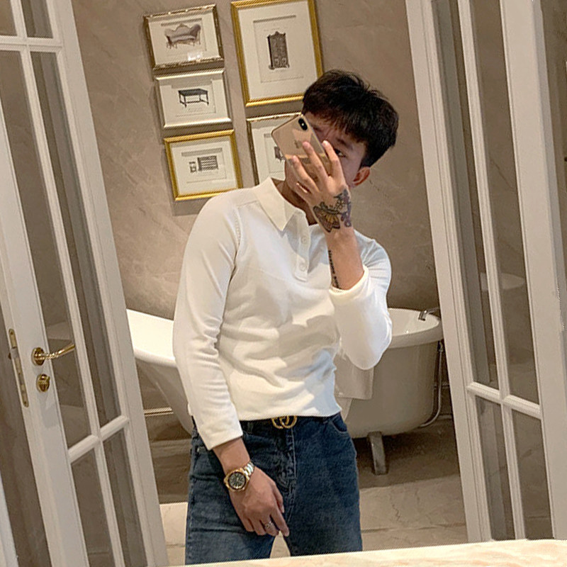 Brother Spring Men's pure color knitting long - sleeve knitting Korean fashion base and sweater tide