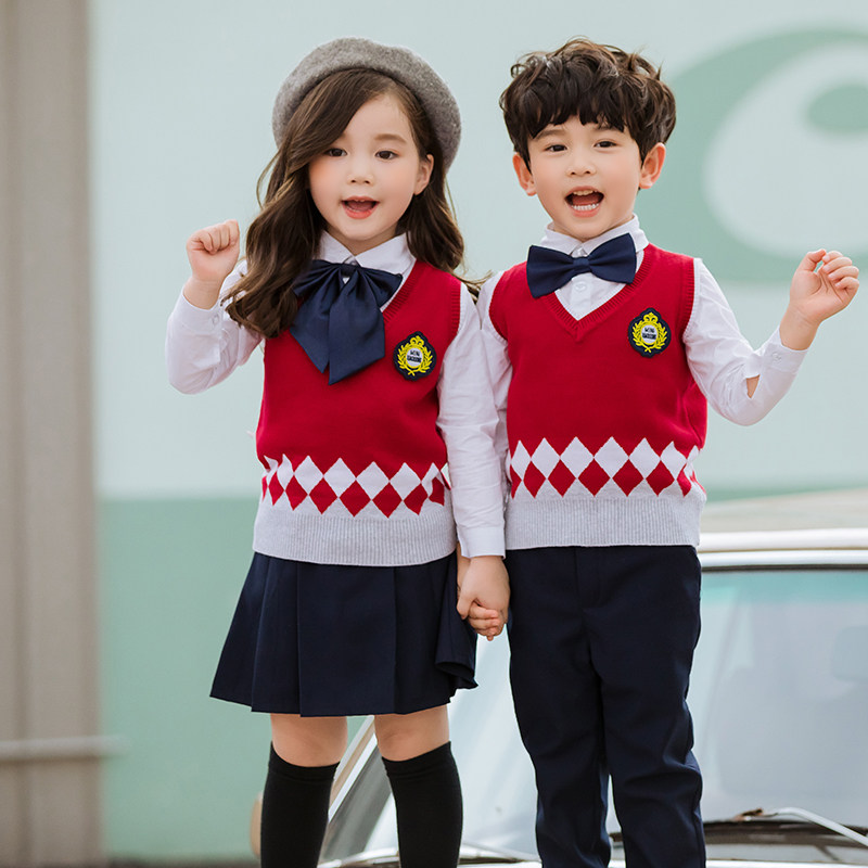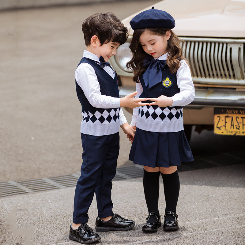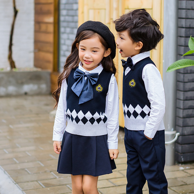 Kindergarten clothing spring and autumn clothing British college style children's class clothing autumn sweater primary school uniform three-piece suit