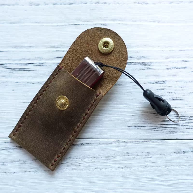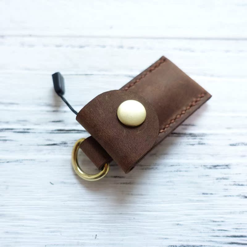Leather U Disk Protective Sleeve Mini U Shield Storage Small Bag Protective Sleeve Portable Leather Key Anti-lost Leather Sleeve Square Tail