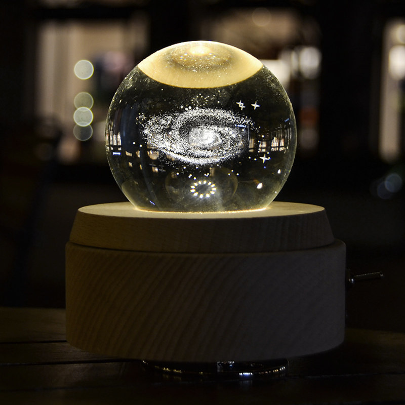 Birthday gift New Year Valentine's Day luminous Elk crystal ball rotating music box Wooden send boyfriend and girlfriend creative