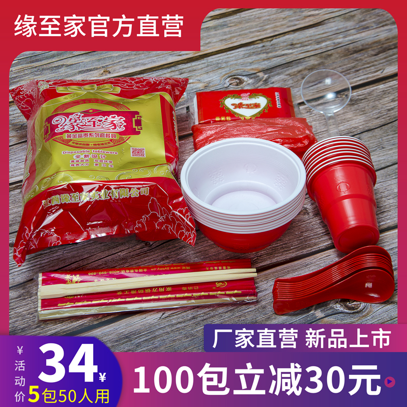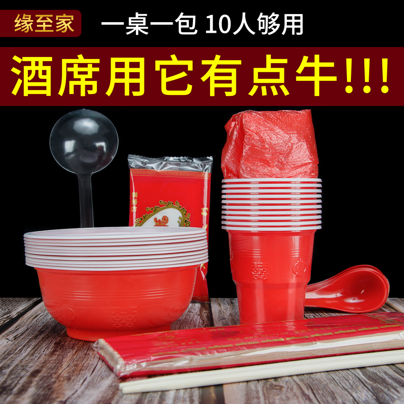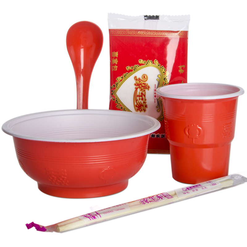 Disposable tableware set banquet wedding red household plastic hard combination tableware bowl degradable food grade