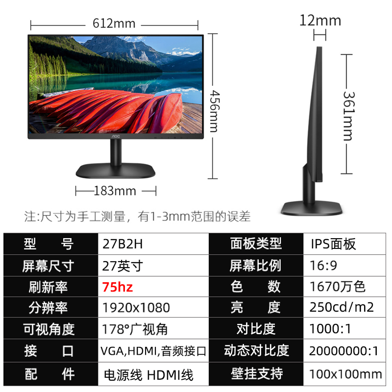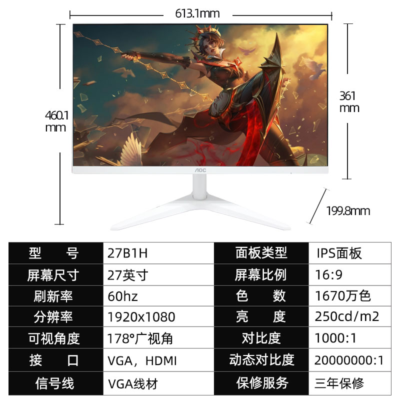 AOC display 27B1H 27 inch IPS HD hdmi e-sports game computer office LCD monitor B2