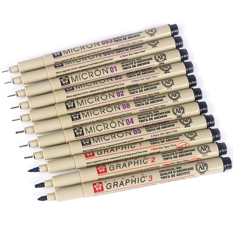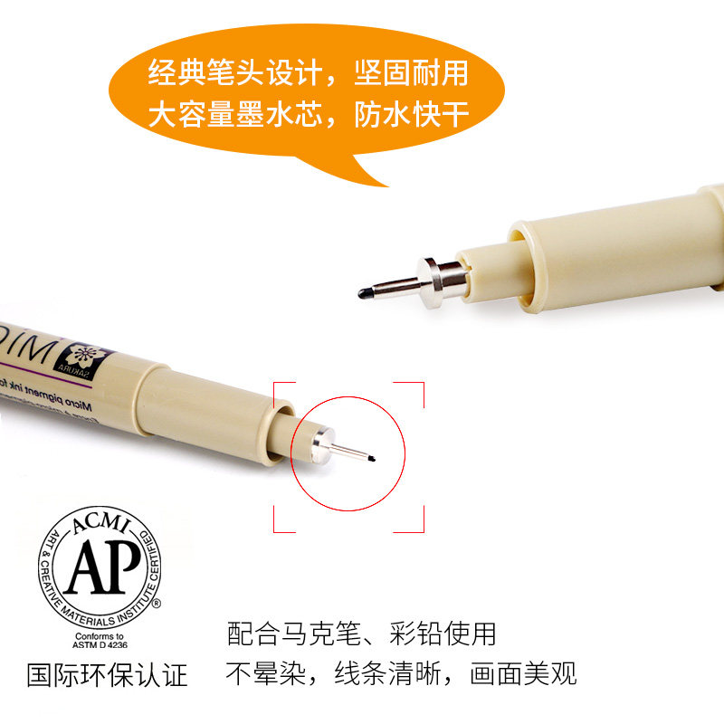 Japan imported Sakura needle pen set waterproof hook line pen Oily students with art stroke Black double-headed children's painting special oil painting brush Sakura brand color needle pen