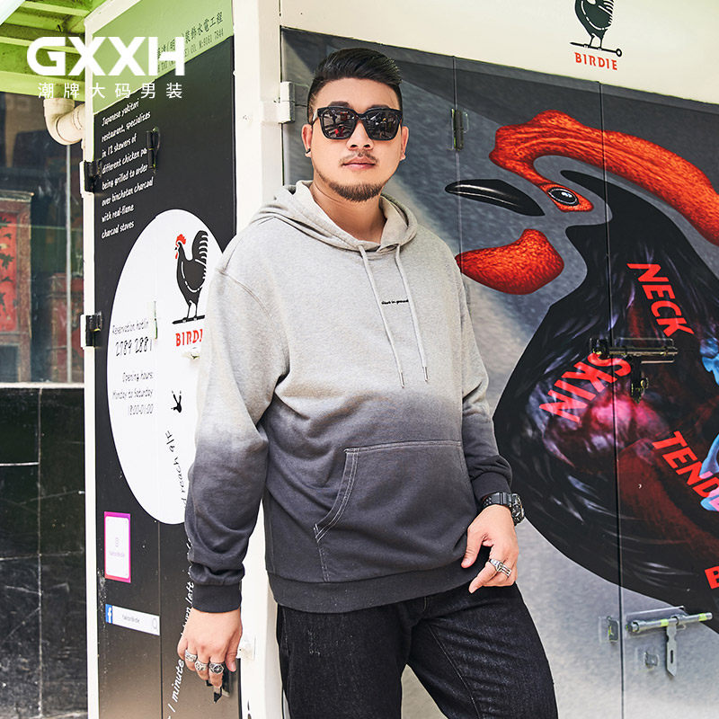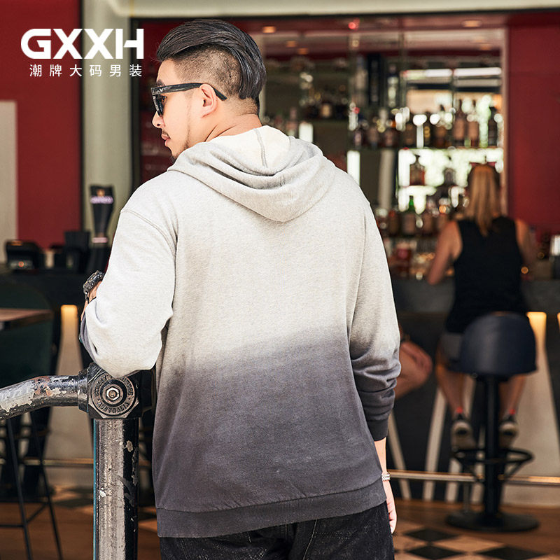 GxxH large size men's fashion brand fat loose pullover T-shirt plus fertilizer to increase simple gradient embroidered hooded top
