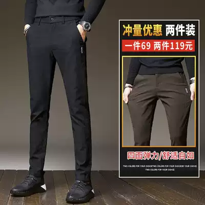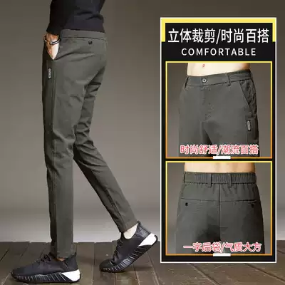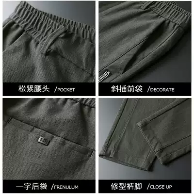 Spring and summer four seasons elastic long pants men's casual pants tide 2021 spring and autumn new loose middle-aged dad outfit