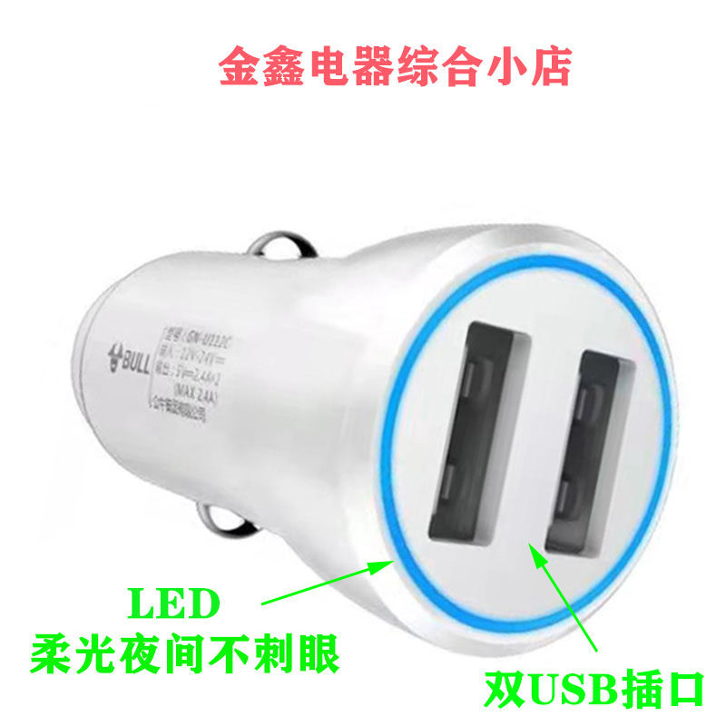 Bull car charger cigarette lighter to USB one-to-two multi-function vehicle with smart fast charging plug 5V2 4A