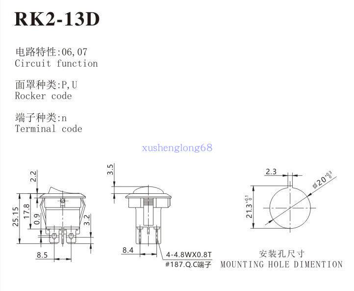 SOKEN with red light switch RK2-13D 2 * 1 black black arc 2 stalls 4 feet Round lower double row foot diameter 20MM