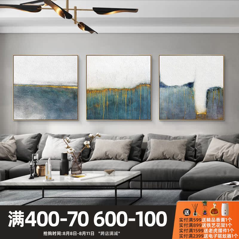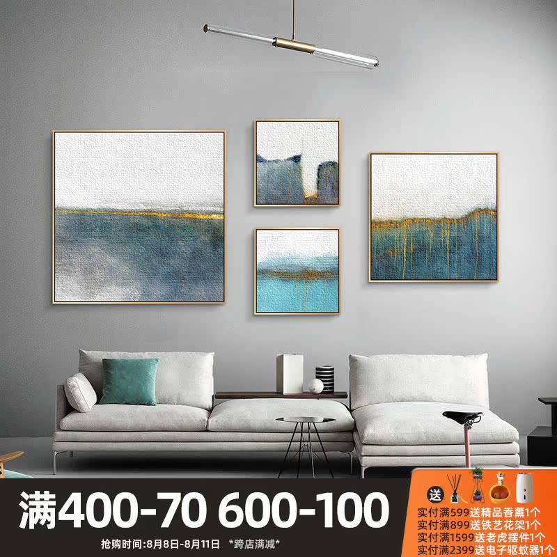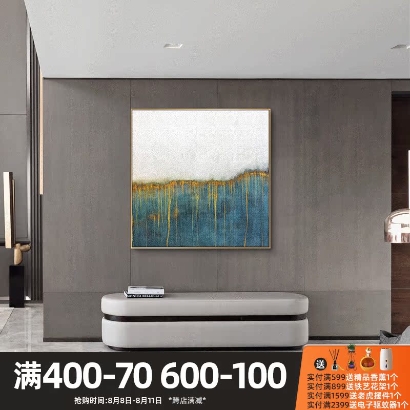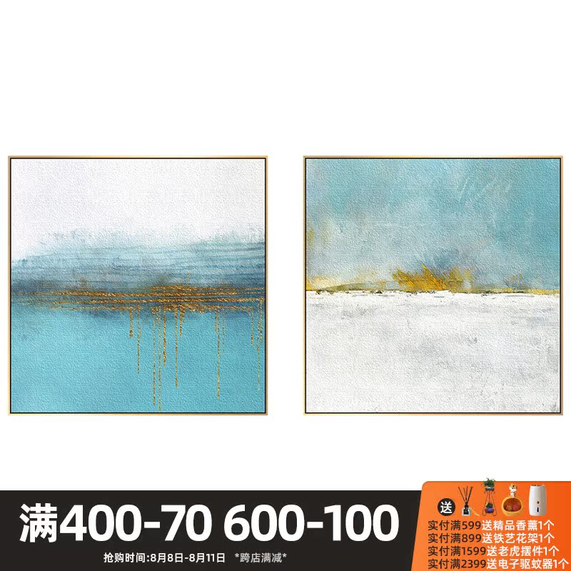 Blue minimalist abstract decoration painting Nordic style living room hanging on the meteorological square murals of atmospheric gold square