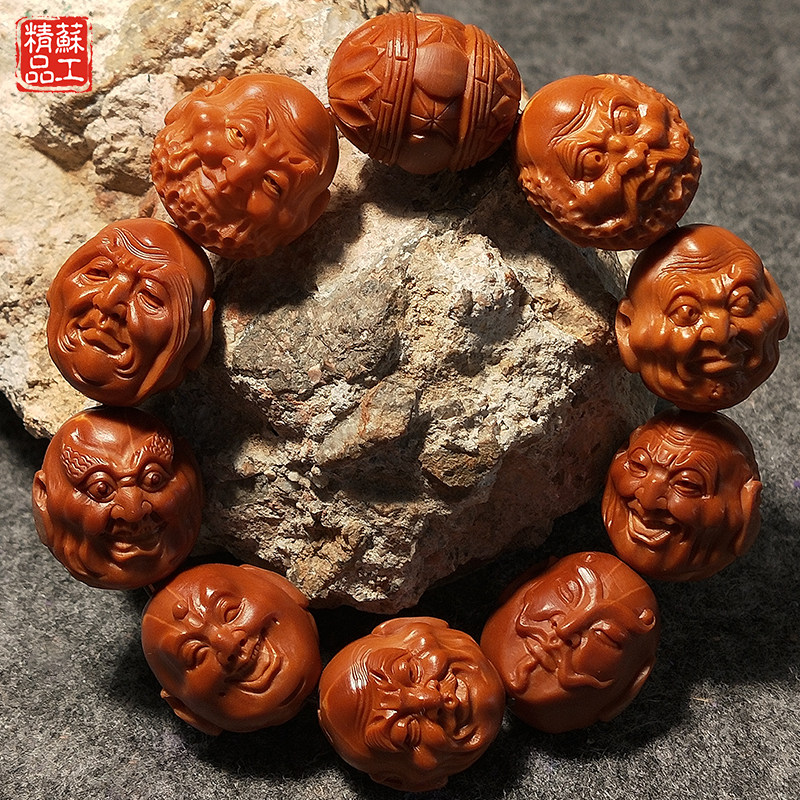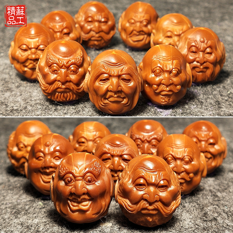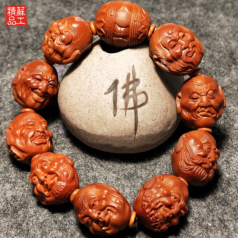 19 fine olive core Sunan gong double-sided iron core realistic eighteen arhats pure hand-carved text play male and female bracelet