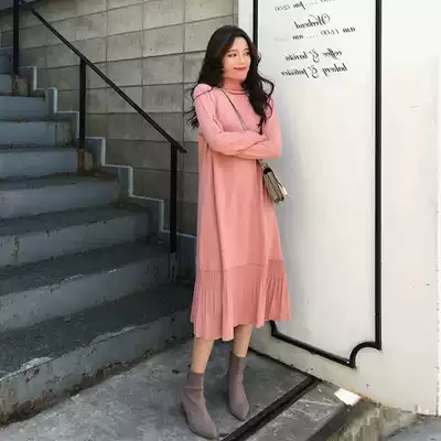 French early autumn cold Women's 2021 new autumn knitted dress women's long sleeve long skirt knee sweater skirt
