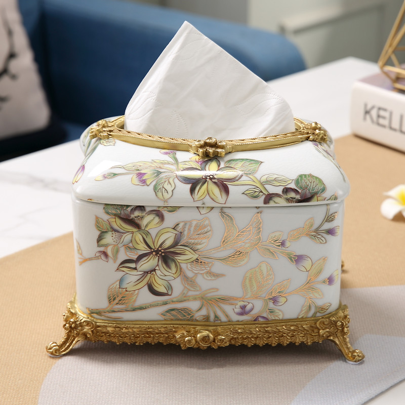 Ceramic with copper tissue box light luxury simple living room household paper box high-grade copper inlaid paper box home decoration