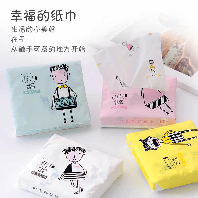Color printed tissue paper bag paper carry-on removable with pattern cute creative cartoon whole box household removable toilet paper
