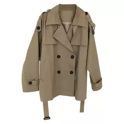 2021 Autumn New temperament short version of windbreaker women long version of small man coat waist thin loose khaki