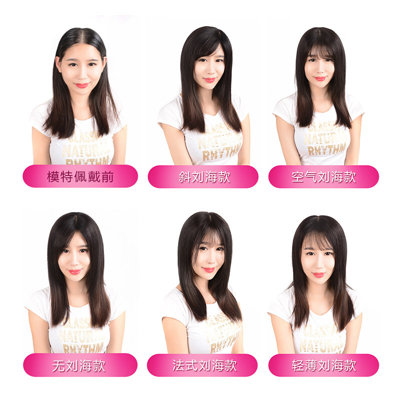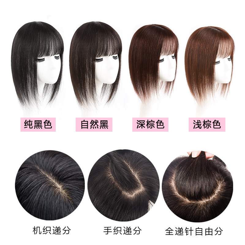 Hand needle top head replacement piece Jurchen hair long straight hair block bangs invisible seamless wig piece to cover white hair increase hair volume